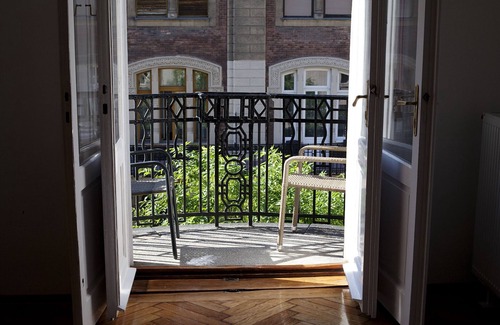 The elevator brings you up to one of the last floors. The apartment got big windows and is filled with light. We added an original Italian Espresso Maker to it, to provide a perfect start for your day in Budapest as well as an sophisticated Sound System from Geneva so you can simply enjoy a unique living experience.