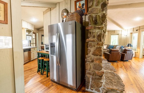 As soon as you enter Linger Longer, you will be greeted with the best cozy lake house vibes. Immediately to your right you will find the kitchen + laundry room. The kitchen is fully equipped with everything you need to cook the perfect post lake day meal for your family and friends. A few highlights are the extra ice maker, keurig, and a toaster oven/air fryer combo. The living room offers a wonderful space for a family movie night and the sun room is the perfect place for enjoying your morning coffee or an evening cocktail. Right off of the kitchen is the master bedroom + ensuite bathroom. The master bedroom has private access to the back deck + courtyard area. On the other end of the house are two bedrooms + a bathroom. Heading outside and up the outdoor staircase you will find access to the fourth bedroom. It features a queen bed + a petite en suite bathroom.