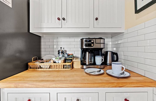 The large kitchen has a gas range, microwave, air fryer, stocked spice cabinet, coffee and tea bar, pots, pans and dishes for both in house dinners or back yard BBQs. When it’s time to relax, there’s no shortage of entertainment options. Smart TVs with streaming capability, are located throughout the house, board games and the beach just 4 blocks away.