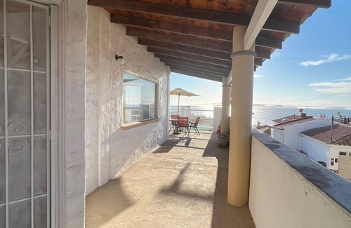 Escape from all of the noise in our private Spanish adobe-style home. Enjoy a safe and relaxing time in our beautiful ocean view home within the guard-gated community of San Antonio Del Mar. Our home comes with a full kitchen and an open concept living & dining room with panoramic views of the ocean and islands off the coast. While the inside features Spanish-style architecture, you'll definitely want to spend some time on the ocean-facing balcony, whether it's relaxing enjoying a meal, playing cornhole, or hanging out by the fire pit.