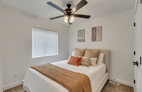 Welcome to our brand new luxury home, minutes away from BYU, downtown Provo, and other local attractions! With an open concept layout, large living area, and 4 bedrooms, our home comfortably accommodates up to 14 guests. The massive master bedroom suite is a true highlight of this home. Enjoy using the barbecue grill on the patio and parking in the 2-car garage or extra parking spaces across the street. Our property managers live in the basement apartment to ensure a perfect guest experience!