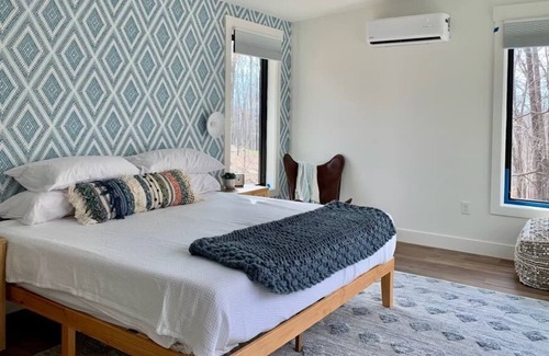 Step into this brand new 540 sq ft modern cabin with California-inspired boho design and experience playful color and fun features like a blue retro fridge. Top of the line countertops, flooring, tile, and plumbing fixtures create a luxury experience inside while surrounded by the beauty of untouched wilderness.