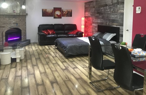 Newly renovated basement apartment fully furnished style loft + one close bedroom w/ double bed, large space including kitchen & living room w/ Queen bed, full bathroom with shower, lots of storage for your personal belongings, new appliances, electric fireplace, very well isolated and quiet, check yourself in with keypad, 50” tv with cable, movie-network,free WiFi , free parking in front of the apartment