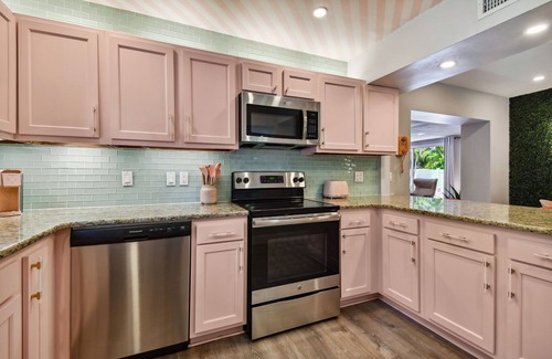 The entire home has been thoughtfully remodeled to restore its mid-century charm and vintage design. Everything inside has been carefully planned to look retro but still new and modern! Think chic, think fun, THINK PINK!