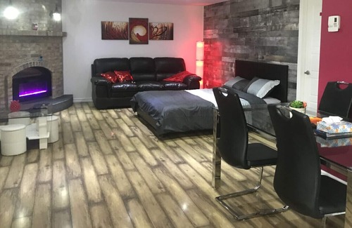 Newly renovated basement apartment fully furnished style loft + one close bedroom w/ double bed, large space including kitchen & living room w/ Queen bed, full bathroom with shower, lots of storage for your personal belongings, new appliances, electric fireplace, very well isolated and quiet, check yourself in with keypad, 50” tv with cable, free WiFi , free parking in front of the apartment