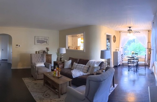Our outdoor entertainment area located directly behind the house sits on a beautiful and well maintained property, perfect for fun games with the family. We offer KanJam, Croquet, and Horseshoes, but guests are welcome to bring their own games (so long as they are safe and respectful of the neighbors).
