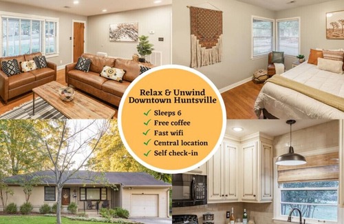 Centrally located in the heart of downtown Huntsville near the best dining & shopping. This house is located in the best neighborhood in Huntsville. The large yard is perfect for hosting your next family getaway. Your stay comes fully stocked with everything you need, including fast internet, a dedicated workspace, Roku smart TVs, and more. This house is perfect for those in town needing an extended stay with a personal home-away-from-home feel.