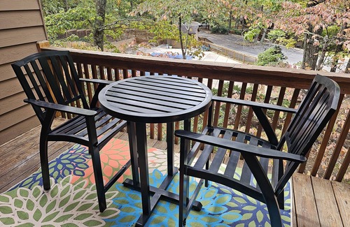 It's time to enjoy the Blue Ridge Mountains! Our newly-renovated condo is located in the convenient Laurelwood Subdivision and is right across from the Market Deli and Grocer, where you can get made-to-order sandwiches and salads or any necessities for preparing meals. We are a 2 minute walk to the slopes and the Mountain Inn, which features the Edge restaurant as well as the Upper Crust pizzeria and Coffee Shop. Down the mountain along lively Route 151 are numerous wineries, breweries, cideries, shops, and restaurants. Out front of our condo we've installed a motion-sensitive floodlight and security camera, and your rental is protected by an electronic keyless entry lock and deadbolt. Once inside, you'll love our premium furnishings, like HD Smart TVs with Netflix and Prime, high-speed Wifi including a dedicated workspace, and a wood-burning fireplace complete with logs and kindling. The fully-stocked kitchen features all stainless steel appliances including a dishwasher, air fryer, crockpot, microwave, and Keurig coffeemaker, as well as quartz countertops, a breakfast bar with barstools, and a Bumbo floor seat and tray for a baby or small toddler. The full-size washer and stacked dryer are located in the pantry with detergent and dryer sheets. There you will also find paper towels and trashbags, spices, extra batteries, and fire extinguishers. Off the kitchen is the deck and outdoor dining area with a view of our community pool. In the living area, relax in the leather reclining sofa or loveseat, or visit the Bonus Room for some fun with the Xbox One or any of our numerous boardgames. There's also a Lego Cave closet with kid cushions for the little ones. The entire condo is climate controlled with Central Air and Heating. The downstairs sleeps 6, with 1 Queen bed and 2 bunkbeds with premium linens in the 1st bedroom, complete with a 50" Amazon HD Smart TV and bedside charging station, as well as 2 Twin beds in the Bonus Room with a tower fan and space heater. Down the hall on the 1st floor is a Full bathroom, complete with premium toiletries, towels, and hair dryer. In the coat closet you'll find an ironing board and iron, a clothing steamer, a vacuum cleaner, and access to cut the water on and off upon arrival and departure. The loft bedroom upstairs includes a new plush King posturepedic mattress with premium linens and bedside charging stations, ceiling fan, rocker with port-a-crib, and a workstation featuring an ergonomic desk chair. The Full bathroom upstairs also includes towels, premium toiletries, and vanity mirror with hair dryer. Both bedrooms include closet space with extra pillows. Outdoor storage is available for securing your skis, boots, and snowboards. A private, heated community pool is available to all guests from Memorial Day to Labor Day. ABSOLUTELY no pets allowed please.
