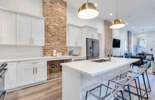 Immerse yourself into New Orleans culture by staying at Masion Bleue, a newly renovated historic single-floor shotgun home in the Marigny. The home offers a vibrant décor inside and outside. Relax in the heated/cooled cocktail pool and enjoy a drink from the inside wet bar equipped with a beverage cooler and ice machine. The whole group will enjoy easy access to everything from this centrally located place. Masion Bleue welcomes large groups with 5 bedrooms, 5 bathrooms.