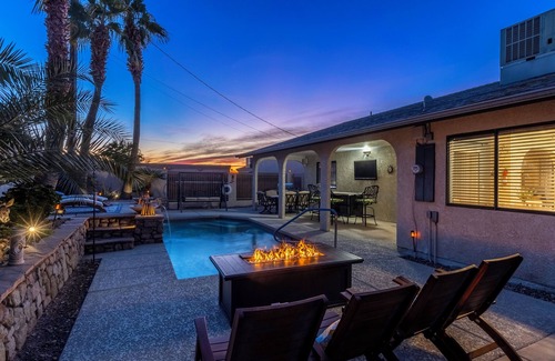 Stay comfortably in Lake Havasu City at this 2-bedroom Pool home. Marvelous sunset views await guests. Relax in the serene living room, where a queen sofa bed provides extra space for additional guests. The bedrooms feature a king and queen bed, ensuring a phenomenal night's sleep. With 2 bathrooms equipped with a bathtub and shower, guests can unwind in style. Fall in love with Lake Havasu City and enjoy the magic it has to offer. Pets are welcome at an additional charge, make sure you selected pets as part of your search for this fee to apply. If pets are not disclosed in the reservation, an additional fee will be charged.