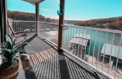 Welcome to our Lake Getaway! Enjoy your stay in this newly updated Waterfront Condo with views of the Main Channel. Located at MM 4 on Horseshoe Bend Overlooking the Famous Docknockers Beach Bar… convenient location just 10 minutes from the strip, local stores & restaurants. Great sunset views from the private screened balcony * PET FRIENDLY* Amenities: Pool, Firepit & Picnic Areas along with Short Term Boat Slip Rentals and Marina Onsite. Need more space? We have 2 more condos a few doors down!