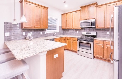 NEWLY construction built. Two-story with ALL bedrooms located on the 2nd floor, over 2,100 square feet. This home is beautifully decorated with a touch of modern flair & stylishly furnished loaded with updates all throughout, accent shiplap, coffered walls in selective rooms for astonishingly coziness, spacious gourmet kitchen & a lazy lounge for your business & media needs. Guest will have access to the entire home with the exception of the two locked utility closets.