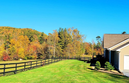 Beautiful newly constructed home. Home has a two car garage that you can use to park your car during your stay. No need to worry about trying to load or unload your car in the rain! Beautiful mountain view from the front porch. We take pride in ensuring the house will be the cleanest vacation rental you will find in the area. Also, enjoy sitting on the porch swings while watching horses, miniature donkeys graze in front of you :) House sits on 14 acres. House is located close to Hendersonville and Asheville. All paved roads to the house with a short driveway. Only located 3.7 miles from I-26.
