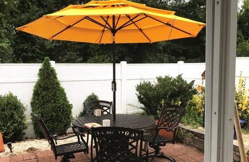 The townhome has 2 nice sized bedrooms both with Green non-toxic mattresses. The Master suite has a huge deep tub with a separate shower. The second bedroom is also very large with a full bath. Both bedrooms have plenty of storage with large walk-in closets. Sit outside on our comfortable Adirondack chairs at our firepit in our private outdoor patio/fenced in yard for a leisurely drink and conversation at night, coffee in the morning or a midday/evening bbq. Our screened in porch is the perfect place to sit during a rainstorm and hear the inviting rhythm of nature abound. The birds, butterflies and hummingbirds will be sure to greet you here!