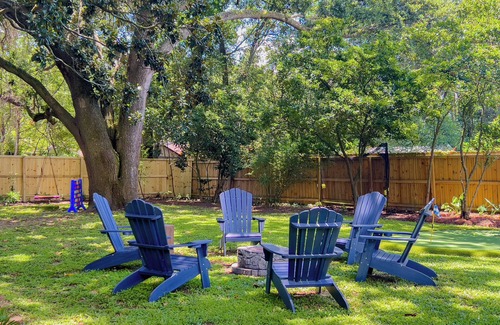 This location has it ALL! Family friendly in a quiet neighborhood perfectly situated to enjoy all the area has to offer. Short drives to Folly Beach the most laid back beach with the best waves for surfing/boogie boarding, historic downtown Charleston where you can step back in time and ride in a horse drawn carriage, participate in walking tours during the day and ghost tours at night. Quick trips to Patriots Point, area golf courses, the county park with waterpark, walking trails and kayaking, and too many restaurants nearby to count! Just a short walk to Starbucks, Chick-fil-A and local restaurants like Cuda Co. seafood market, Jack's Cosmic Dogs and Baquette Magic. The home was recently remodeled and everything is new from the beds and mattresses to the kitchen with Samsung smart appliances. This peaceful retreat situated among live oak trees offers 3 cozy bedrooms, including 2 queen beds, 1 set of bunk beds, and 1 murphy bed. With amenities like an outdoor putting green, fire pit, a full size washing machine and dryer, a Blackstone grill, outdoor shower and all the accessories you need to spend a beautiful, relaxing day at the beach. Large smart tv's and WiFi and fully stocked cabinet of family board games and puzzles is included so you can relax and unwind in this enjoyable space. The home is equipped for both long or short stays to make your vacation one to remember!