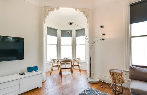 Stay in a classic San Francisco 125 year old Victorian with a brand new renovation of the entire apartment. With high end fixtures and attention to detail, the owners spared no expense creating the perfect city retreat. The spacious flat is welcoming with a gorgeous kitchen and bathroom, 11 foot ceilings, natural light, hard wood floors throughout, modern furniture, fixtures, and amenities. The flat has two bedrooms with one king size bed in the master suite and a queen size bed in the guest suite, a full living room with 50” high def TV, a cute dinette table in the nook and views of quintessential San Francisco Victorians.