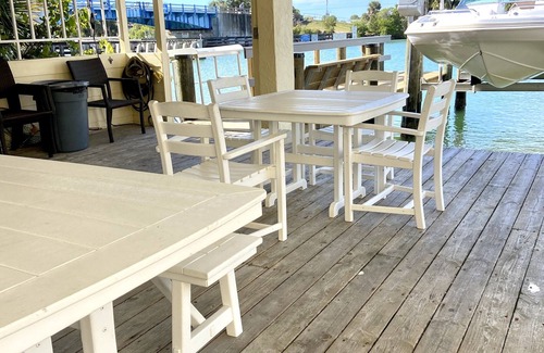 Activities: Walk across the road to enjoy 2 restaurants for waterfront dining and dancing or take a walk across the bridge (5 minutes) to experience 1.5 miles of white sandy beaches, full time lifeguards and a boardwalk with beach concessions, showers, pavilions and even the famous Drum Circle on Saturday evenings before sunset. Feel free to fish off the dock or the shore.