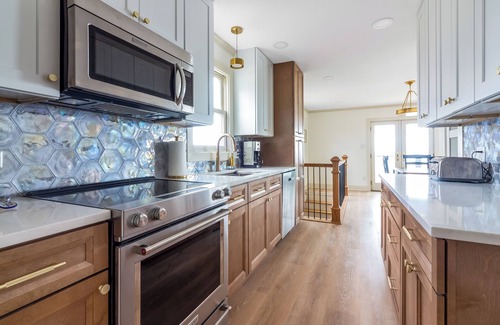 Welcome to Lakeshore Blue—a stunning, designer-renovated home perched on a sand dune with panoramic views of Lake Michigan. This 3-bedroom, 2-bath retreat sleeps 8 and blends luxury finishes with cozy, coastal charm. Watch sunsets from the living room, dine on the deck, or gather around the firepit—all with lake views as your backdrop. Just steps away, a shared stairway leads you to the sandy shoreline. It’s a peaceful, high-end lakeside escape, perfect for making unforgettable memories.
