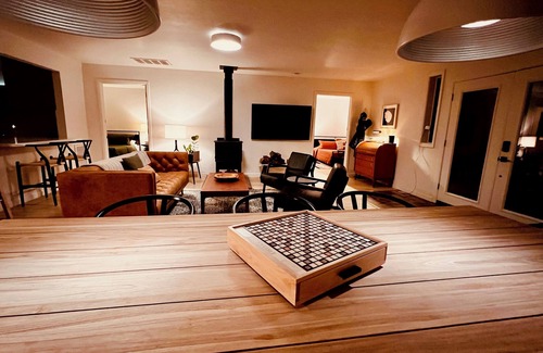 Enjoy a break amongst the trees in this newly renovated cabin capable of hosting groups up to 8 with a prime location in Upper Amador County. Perfect for a ski trip in the winter or as a base camp for hiking or wine tasting in the warmer months. The cabin features stylish, centralized living areas flanked by four king-sized bedroom suites each with their own bathroom. The property also includes outdoor dining areas and easy parking for up to four vehicles.