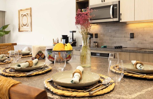 Unwind in the cozy living room, complete with your favorite TV shows, or step onto the private balcony to take in the panoramic views of Danzante Bay. The fully equipped, contemporary kitchen, stocked with all the necessary utensils for your culinary adventures, ensures you have everything you need to prepare delicious meals.