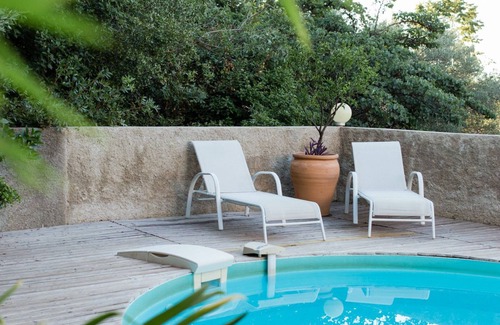 It is air-conditioned equipped and comfortable. Terrace in the shade of olive trees. Swimming pool shared with the owners