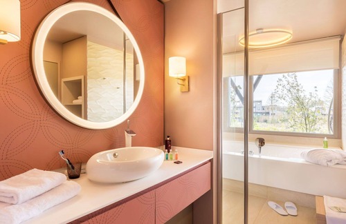 Le Park Village Nature Paris offers a variety of on-site facilities, including a reception area, a restaurant, a bar, a bistro, WiFi access, a sauna, massage services (additional charges apply), a relaxation room, a hammam, a bowling alley, a playroom, shopping amenities, and a boutique. The complex is equipped with central heating and provides bicycle rental services.