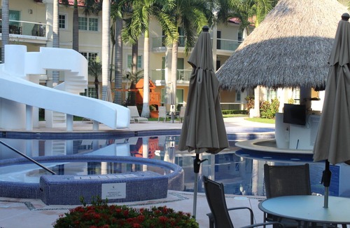 Located in 401 Boulevard de las Naciones, (wall to wall to Burger King) Apartment Turquesa 215 close to the beaches "El Revolcadero" and "Puerto Marques" (1 miles), Burger King, Subway, many other restaurants at walking distance. Pool, children's pool, Jacuzzi, squash, gardens, own parking. Air conditioned, new furniture, full kitchen, washing and drying machine. First floor. 2 Bedrooms 2 Bathrooms and 6 sleeps with a fully equipped kitchen and a lovely pool view .... Suitable for families who look to spend their vacation or people in business trips .