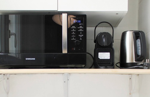 The studio is fully equipped and will be perfect for a tourist or business stay. It has: Microwave, Iron, Hair dryer and Washing machine.
