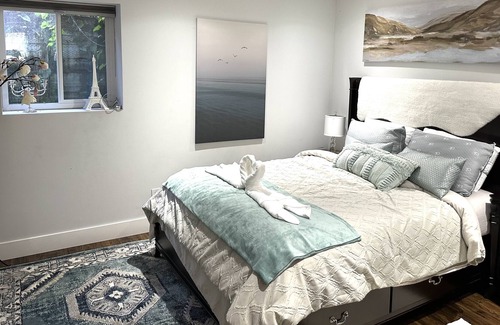 Go back in time and visit the innocent and vibrant 50’s. Enjoy a quiet and beautiful neighborhood full of large trees and beautiful walks. The nature walk bog is called the worlds healthiest air and is a 5 minute walk away. Relax putting in the back yard and work on your golf chipping skills. Large and spacious suite where you will want to come back time after time.