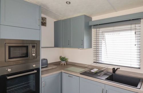 This single-storey lodge has an open-plan kitchen, dining area and sitting area with an electric oven, gas hob, microwave, fridge/freezer, dishwasher, Smart TV and electric fire, and two bedrooms with TVs including a double with en-suite, and a twin, serviced by a bathroom. Outside there is an enclosed, wrap-around veranda with furniture, and off-road parking for two cars. This is a smoke-free property. WiFi, fuel, power, bed linen and towels are all included in the price. For a seascape in Cornwall, book No. 4 Fistral. Note: There are steps to the exterior. Note: Guests have access to two well-stocked fishing lakes, an outdoor heated swimming pool, an adventure playground, crazy golf course, a launderette, a mini mart shop, and a nature trail. Note: The swimming pool sessions need to be booked from reception and spaces are limited; the outdoor pool is open between 10 am - 4 pm from 28th April until 17th September (weather dependent). Note: Rod licence required for fishing.