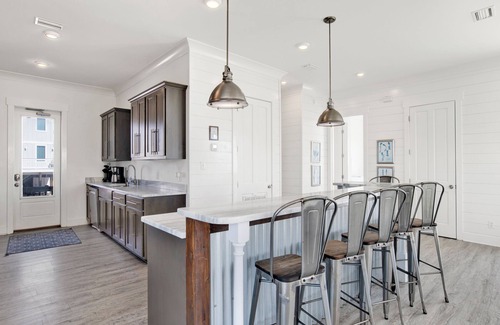 After a long, sun-filled day, "No Shoes" offers ample sleeping space with comfort and luxury. There are 6 total bedrooms, and on the main floor is the master bedroom with a king bed and private bath. Upstairs, 3 bedrooms have king beds and private baths. There is also a queen bedroom and a room with 2 sets of bunks that have a shared bath. Up to 14 guests will be comfortably accommodated in this luxury home! For a relaxing, fun-filled, beautiful beach vacation, come rent the beachfront "No Shoes" that the whole group will love!