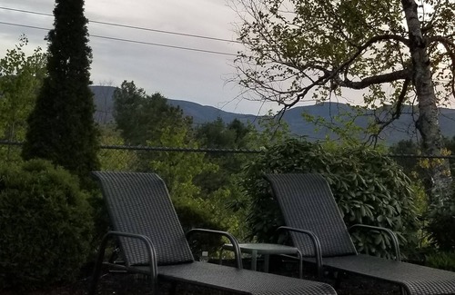 Panoramic Mountain Views in the heart of the White Mountains, in this charming North Conway/Bartlett Condo. The condo has the same views as the Scenic Lookout on Rt 16/16A, looking out at Cathedral Ledge and the Moats, the condo is very comfortable and has been renovated. The property can comfortably accommodate three people and we have an air mattress for a fourth person if necessary. Kitchen is modern with glass cabinets and corian counters and tile floor. There is a deck out back with wonderful sunsets, patio furniture, and also a gas grill for use which is located out the slider to the end of building next to bench with red top. It is out for summer and fall you can bring it 8 ft off deck, insurance rule. Please clean and replace where you got it. There is a gas fireplace. This small condo development has only two buildings and is usually very quiet and private. The condo is two miles north of North Conway Village at the scenic lookout. There is a book with many local restaurants menus. The condo is handicap accessible with assistance, through back slider in months without snow. Bathroom door opens out for persons in a wheelchair.