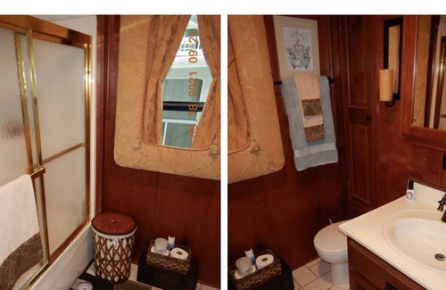 Please note, this houseboat will not be motorized or moved from its location during rental. This serves as a floating house at Cedar Grove Marina. Downstairs is a queen bedroom along with a hidden children’s room (see picture), main floor has a master queen bedroom, and a second queen room along with two full bathrooms, washer/dryer. There is both front and back covered porches with grills and a firepit. Upper deck is equipped with a wet bar, lounge chairs, refrig, table, and Hottub. With slide.