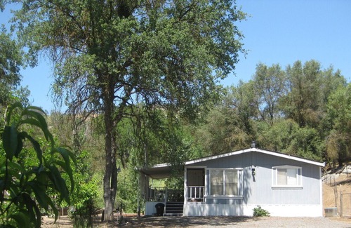 Whole house! Wifi included! Five beds, sleeps up to 6 in three different bedrooms. Cute mobile home on 2+ acres in beautiful wooded California foothills. Key in lock box unlocks front door. Wifi, full kitchen; coffee, creamer, sugar, cereal, milk, pancake mix, syrup, oatmeal all included. Washer, dryer, beautiful patio overlooking shady oak trees. You may even see a hawk, squirrel or deer. Only 40 minutes to entrance of Kings Canyon/Sequoia National Parks. Yosemite Park is about 2 hours away. Total privacy--you'll have the whole house to yourself! Wonderful, peaceful getaway!