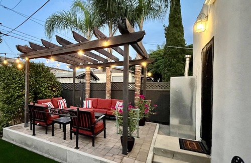 The backyard is definitely the highlight of the property. With outdoor seating for 7, there is plenty of space to relax with your guests. New grass turf installed give front and backyard a clean look. Grill and propane in backyard. Dog friendly too, fenced in front and back yards, so your good boy or girl are safe! Home recently refurnishing place with new TVs, beds, and living room furniture. Washer & dryer in unit. Parking in back. Quiet street with little traffic, quiet neighborhood. Walking distance to shops, grocery, and liquor store. $100.00 pet fee per dog, 1 dog max. Discuss if you have more than one dog before making reservation.