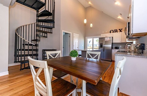 In addition to a gourmet kitchen and beautiful living/dining area, each cottage has 2 bedrooms and 2 full bathrooms downstairs (each bedroom has 2 full-sized beds). There is a loft located up a spiral staircase with 2 additional full-sized beds. The loft area is open to the downstairs living area. There is a gas grill on the back deck. Stacked washer and dryer downstairs.