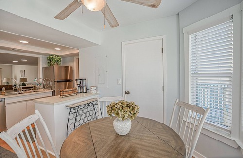 The fully equipped kitchen is perfect for whipping up meals, and features stainless steel appliances, including an ice maker to keep your drinks cold. The kitchen is also packed with utensils, allowing you to cook and serve your favorite dishes with ease. For coffee lovers, the condo features a drip and two Keurig coffee makers, including an upstairs coffee station, ensuring you never go without your morning cup of joe. If you're in the mood for grilling, in addition to the outdoor grills in the shared area, the property also features an indoor smokeless grill, allowing you to cook up delicious meals rain or shine.