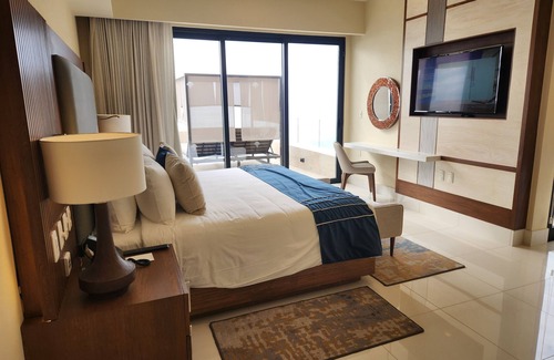 This 3700 sq ft suite has it all! Located on the corridor of Cabo, this unit is at the Villa La Valencia. It is a very new resort. Lots of living space! Cook in a fully equipped kitchen or choose from the 4 restaurants on site. This penthouse suite has incredible views, a jacuzzi and lots of space to enjoy that mimosa or glass of wine. Large pool area with a lazy river running thru the resort grounds. The infinity pool is a great place to chill, or grab yourself a chair on the beach and watch the rays skip out of the water. Just 15 minutes to Cabo San Lucas and also to San Jose. Nearby beaches are a great day trip. Ride horses at sunset on the beach. Great food options at this resort. From pizza to steaks to sushi.