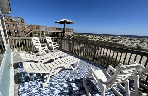 What a view! Take in the ocean views from the sunroom, living room, kitchen, and primary bedrooms. Enjoy the ocean breeze on the spacious deck, rocking in a rocking chair or soaking up the sun on a lounger. There are plenty of toys to make your beach visit easy breezy including boogie boards, beach cart, cooler, beach towels and chairs. Inside there’s an air hockey table, 75” flatscreen TV with a guest Netflix account, Wi-Fi, and plenty of seating to spread out. Comfortable seating for dining or working from the banquet dining table in the sunroom comes with an awesome view of the beach. Lil Salty is a charming and comfortable cottage for most guests and although our bathrooms are on the smaller side, both showers have a detachable shower head wand to make it more comfortable.