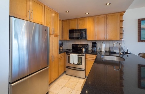 Picture yourself watching the outrigger canoe practices, cheering on world-class surfers, or toasting the blazing sunset with your mai tai from our completely refurbished and updated luxury condominium. Or maybe marveling at the Friday night fireworks at the Hilton from one of the best vistas in town. Serene, quiet, ocean front and marina-front living with a 180 degree ocean and marina view. A true one-bedroom unit, a large sliding door closes to separate the living room from the bedroom, but can be open to make the condo look and feel bigger.