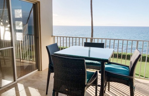 Royal Mauian #212 LUXURY OCEANFRONT condominium on the SECOND floor (Unit #212) is 30 feet from the ocean at the CENTER of Royal Mauian Resort allowing you to enjoy the 180 degree panoramic UNOBSTRUCTED CENTRE ocean view of the Pacific Ocean. A few steps from the Royal Mauian complex are two beautiful white sand beaches, Kamaole Beach Parks I and II. The condo is located within easy walking distance to both life-guarded beaches and to many restaurants and shops. Guests can also enjoy snorkeling right out front of the Royal Mauian Resort.