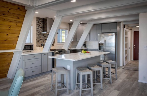 Find yourself 'Above The Waves' when you stay at this beautifully remodeled A-Frame on the central Oregon Coast. This dreamy home includes a spectacular view of the ocean from 2 floors and is ideally located in Seal Rock, one of the most popular places for tide pool explorers, storm watchers and photographers on the Oregon Coast.