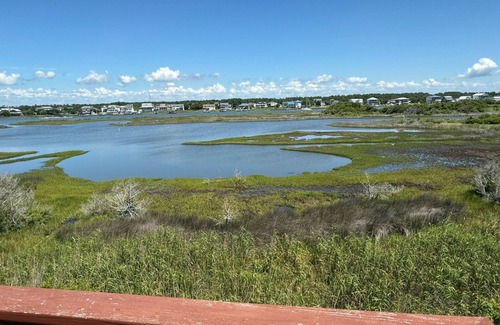 Head to this vacation retreat on North Topsail Beach. Breathe the ocean air from any of the four outdoor elevated decks. The front two decks offer tall Adirondack-style chairs to sip your morning coffee while taking in the ocean views. The top front deck also offers a bistro set. The two rear decks offer the serenity of the intracoastal banks, where you can watch the wildlife at any time, or take in unobstructed views of the sunrise and sunset. Beach access is only 100 steps from the front door.