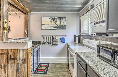Conveniently located near downtown shops, local restaurants, and the sandy shores of coastal North Carolina, this vacation rental is the ideal Ocean Isle Beach base! The studio, 1-bathroom apartment offers classic surf shack style, equipped with a flat-screen TV, a dining area, and all the kitchen essentials. When you're craving some sunshine, step outside into the shared backyard oasis to fire up the grill or mix together a cocktail at the outdoor bar!