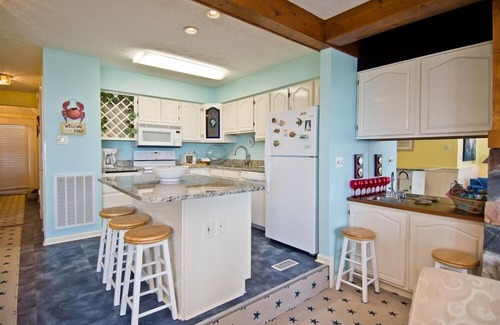 Amenities Include: 1 Box TV with Cable, 2 Flat Screen TVs with Cable, 2 DVD Players, 1 CD Player, fully equipped kitchen with coffee maker and blender. Private Deck with Furniture, Beach Access Walkway. NOTE: Fireplace is not for guests use.