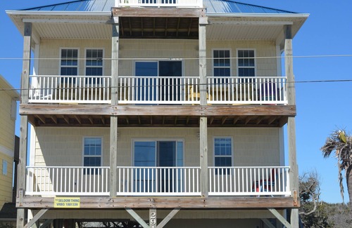 Look for dolphins, birds, shrimp boats, surfers, and beautiful sunrises from the home's three unobstructed ocean view decks, enjoy gorgeous sunsets on the two Sound-side decks, or relax and BBQ on the huge ground level deck. Located on Topsail Island with a quiet, peaceful stretch of the beach with deeded direct beach access 2 doors down, the home also offers a semi-private pier on the Sound at the end of our block for launching paddle boards, small watercrafts, or kayaks. Complimentary two single kayaks with carry carts, beach chairs, umbrellas, and sand toys.