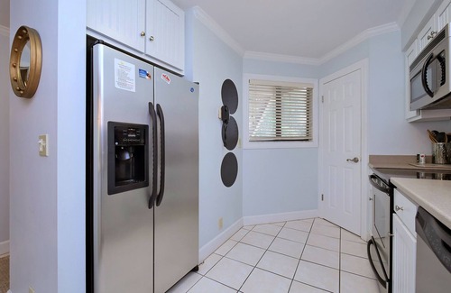 The fully equipped kitchen is stocked with everything you need, from cookware and dishware to modern stainless steel appliances. Whether you're whipping up a quick breakfast or preparing fresh seafood, this space makes mealtime effortless. Plus, the in-unit washer and dryer ensure that your beachwear stays fresh throughout your stay.