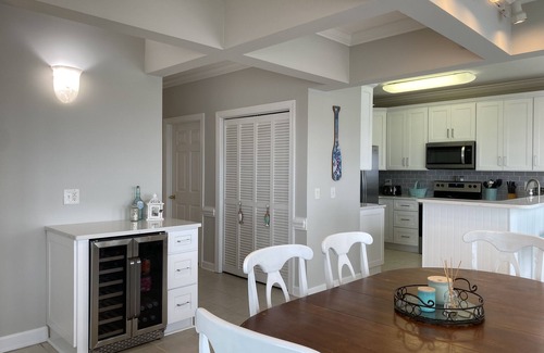 This condo is furnished beautifully with beach style furnishings, comforters and decor. The kitchen has been fully renovated with new appliances, countertops, cabinets and backsplash. A brand new feature is the beverage center with additional space for adult beverages as well as family friendly drinks. The entire condo has a beautiful fresh coat of soothing light gray paint. There are TVs (5 total) in all rooms and comfortable deck furniture. Sleeping 11, it is perfect for families, golfers and couples. Two families or three or four couples without children will find this the ideal vacation rental.