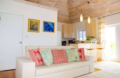 The stylish blend of the traditional and modern in bright colors will make you immediately feel snuggled down. As soon as you enter the cottage you are taken aback by the amazing turquoise view offered by the bright windows after you realize the beauty.