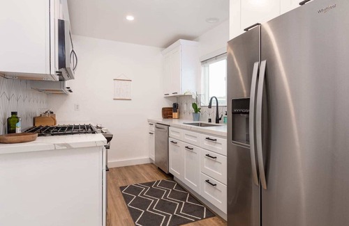 Experience the soothing ocean waves from your private patio. Start your day with a peaceful walk along The Strand and enjoy outdoor dining in beautiful Manhattan Beach. Perfect for business or leisure, this single-floor townhouse is just one block from LA's most stunning beach. Featuring a brand-new kitchen and professionally designed interior, it offers the perfect blend of luxury and location. Enjoy comfort and convenience in this inviting coastal haven. Welcome home!